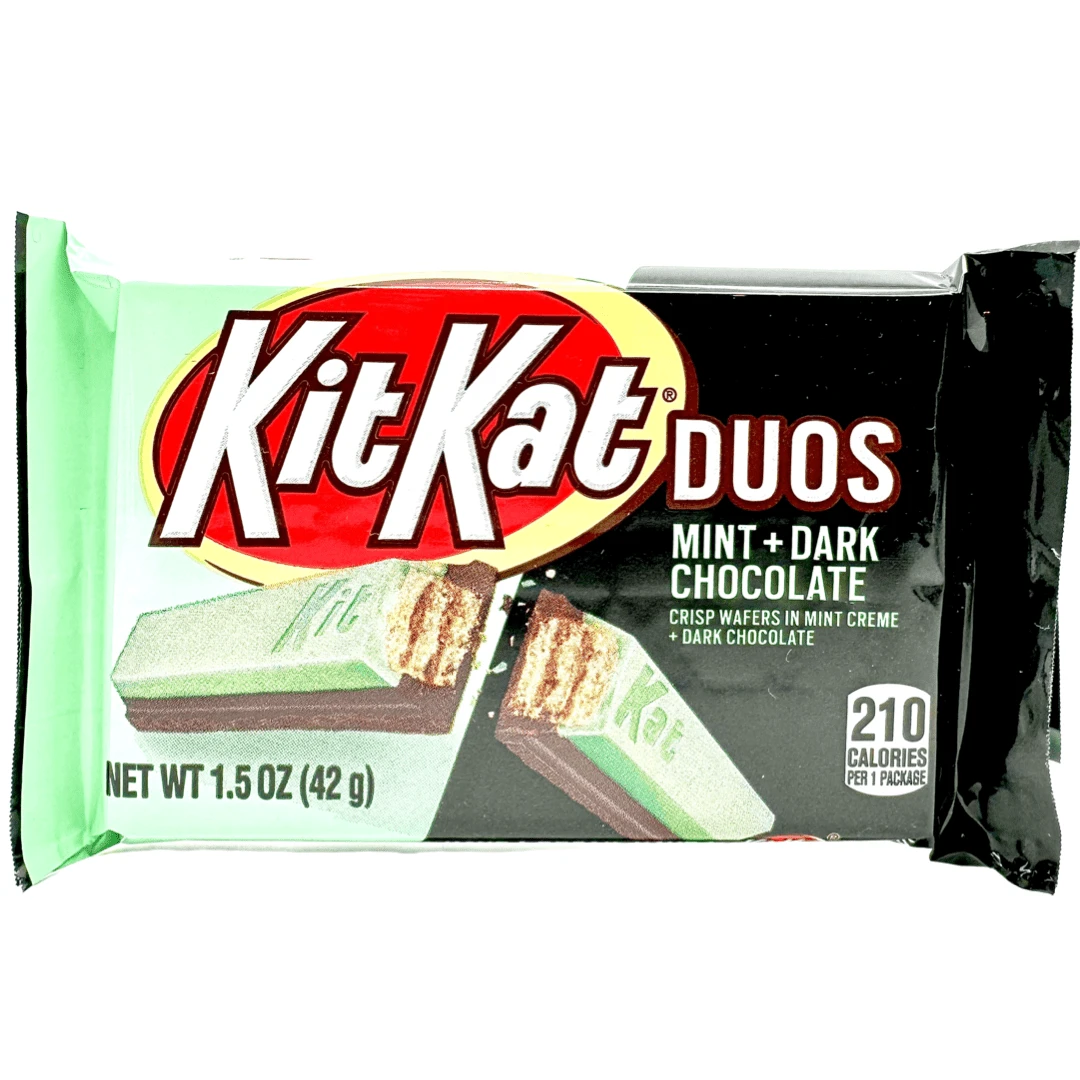 Prepare your taste buds for a dynamic duo of epic proportions! Kit Kat Duos Mint + Dark Chocolate is the ultimate indulgence for those who crave the perfect blend of refreshing mint and rich dark chocolate.