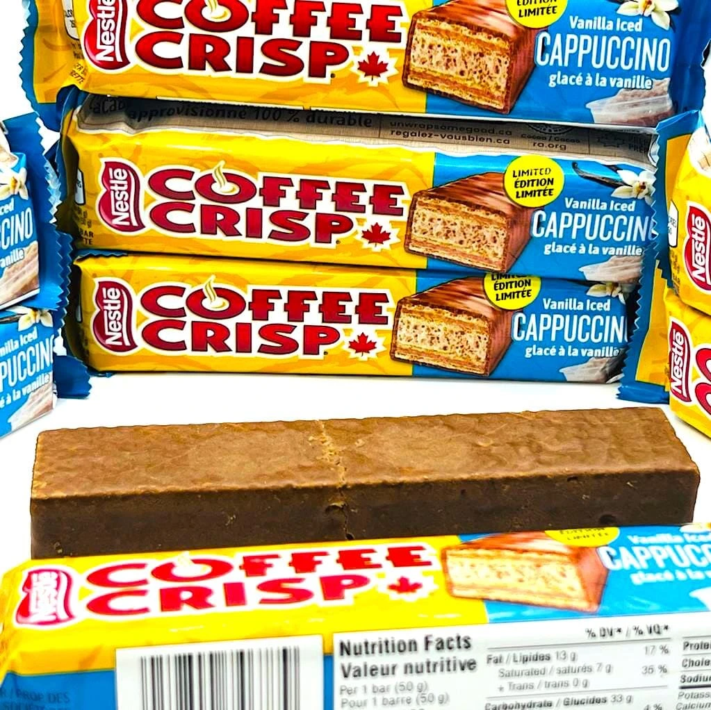 Rich Coffee Flavor: The distinct coffee flavor in Coffee Crisp Vanilla Iced Cappuccino is sure to satisfy your coffee cravings. Each bite offers a delightful balance of smooth vanilla and aromatic coffee, creating a truly indulgent taste experience.