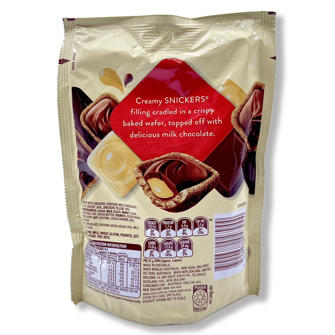 Snack time just got an upgrade with Pods Snickers, a sensational treat straight from Australia! These bite-sized marvels are made with crispy chocolate biscuit shells filled with creamy Snickers goodness and crowned with a luscious layer of milk chocolate. It’s the iconic flavor of Snickers you love, but reimagined into an irresistibly crunchy, chocolaty snack that you won’t be able to put down.