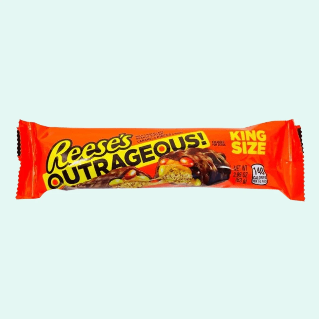 Savor peanut butter, REESE’S PIECES Candy, caramel and chocolate all together in one bar. The REESE’S Outrageous Bar has the best of everything